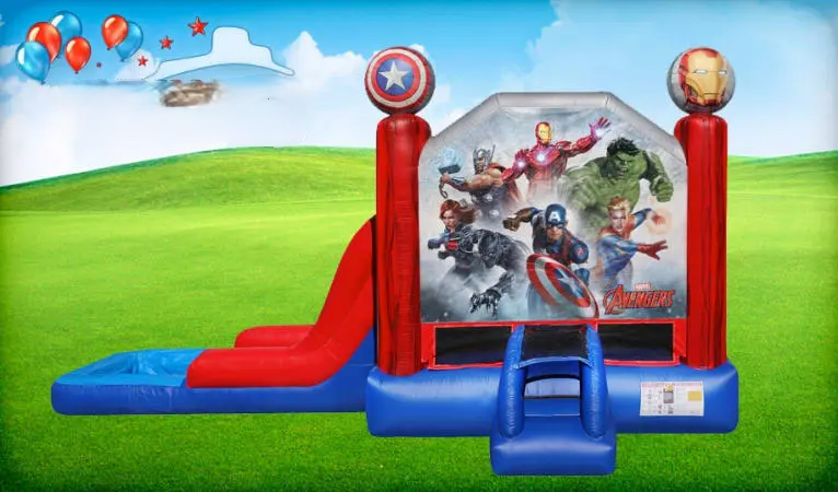 Make your guests feel like superheroes with our 3in1 Avengers Combo! Licensed by Marvel, the combo comes with a bounce house, fold-out pool, and slide, making it a perfect addition for birthday parties and other celebrations. Displayed across the front banner is everyone’s favorite superheroes, including the Hulk, Captain America, and Iron Man. We provide delivery and set up for your convenience.