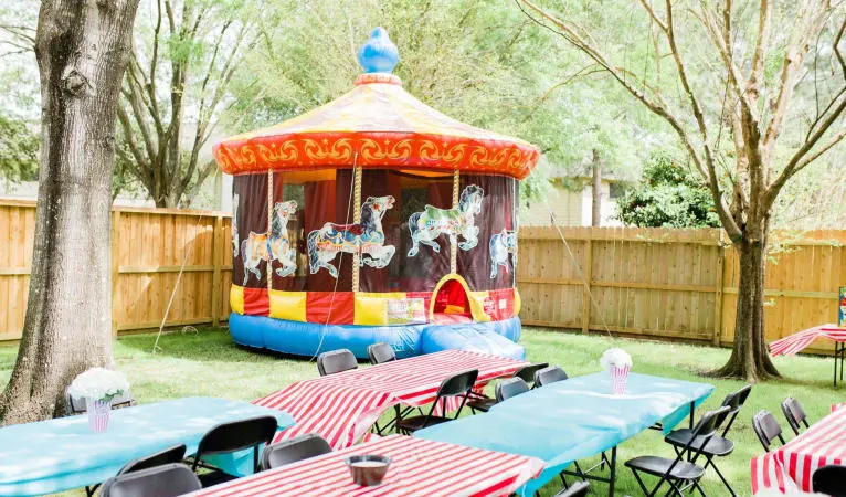 Transform your ordinary gathering into an extraordinary carnival adventure with our Carousel Bounce House Moonwalk. Book now and let us bring the fun, joy, and entertainment to your doorstep. Choose Bounce Frenzy Party Rentals – where every party becomes a cherished memory!
