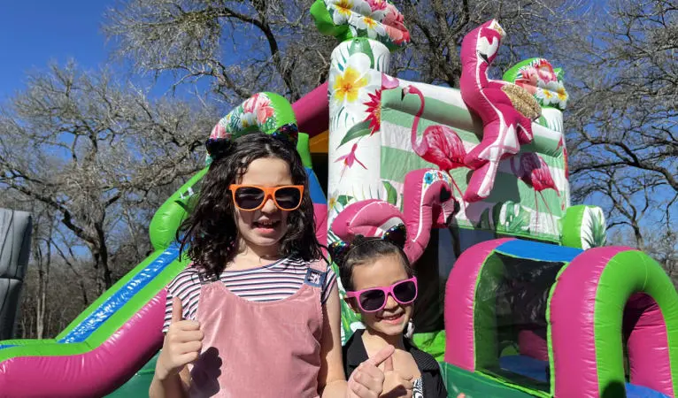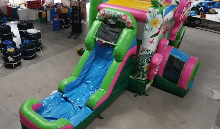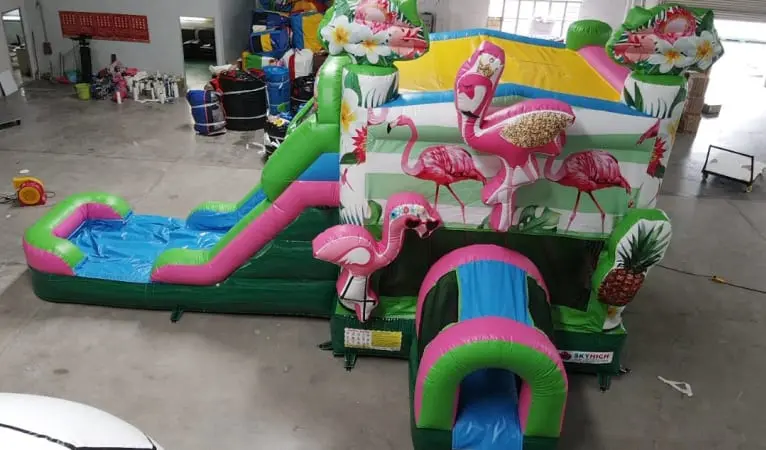 Time to have fun! Get ready, get set and flamingo! Spread your wings, fly and get ready to flamingle! Introducing another amazing addition to our bounce house inventory. Flamingo Bounce House Combo w/ (Dry or Wet/Water Slide) is perfect for any types of event. Don’t settle for less when you can have more. Designed with pink, blue, purple, green and other bright colors, with digitally printed flamingo, flowers and other artistic designs which will surely make your event brighter and fun. This Flamingo bounce house combo features realistic looking Flamingos, a large bouncing area, and a climb and slide with pool. Worried about the weather being too hot? Relax, Chill and Cool down! This can be used as a Water Slide too! Just provide a regular hose and we can hook this up to the misting hose and you’re ready to cool down the summer heat! What if it’s too cold? you can use it as Dry too. This awesome party inflatable will entertain your little ones for hours as they bounce and tumble inside the bouncer. Book today and enjoy quality time with your little love.
