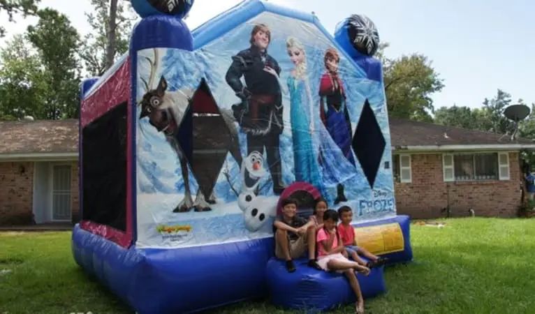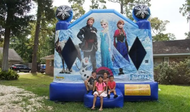 Disney’s magical world of Frozen has brought endless amounts of enjoyment to children everywhere. Bounce Fernzy’s remarkable Frozen Moonwalk has Queen Elsa, Princess Anna, Kristoff, Olaf and Sven displayed all across the large front. Climb through the alluring entryway and set foot in the enchanting kingdom of Arendelle for a day of extraordinary fun! A large 15′ x 14′ jumping arena will have kids of all ages entertained for hours. See-through mesh sides allow you to keep an eye on them as they enjoy a day of unforgettable fun. Keep the magic alive at your child’s next birthday party with this Disney Frozen themed moonwalk. Let bouncefrenzypartyrentals.com keep your day as simple as possible with on-time delivery and set-up right to your door. Book this moonwalk today!