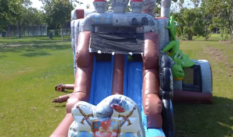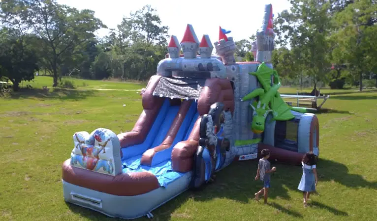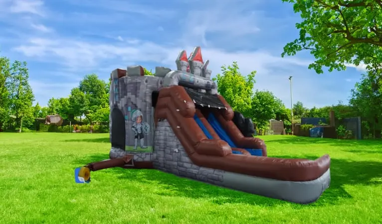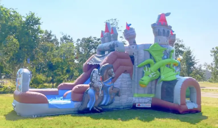 Embark on a grand adventure with our Knights & Dragons Castle Wet/Dry Bounce Combo, available nationwide across the USA. This versatile inflatable playhouse combines the thrill of bouncing, sliding, and climbing in a single, fantastical design. Adorned with intricate castle details, brave knights, and a friendly dragon, it sets the stage for unforgettable kids’ parties and events.