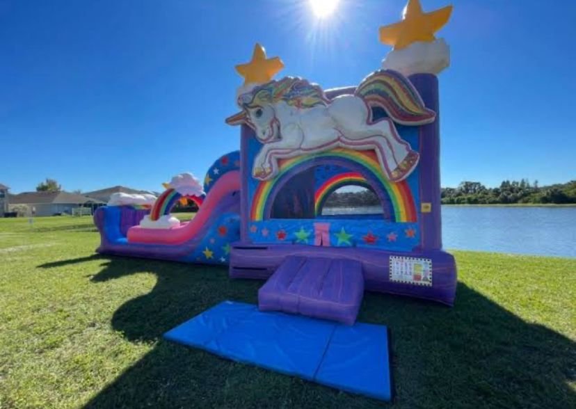 Unicorn Bounce House Combo Slide